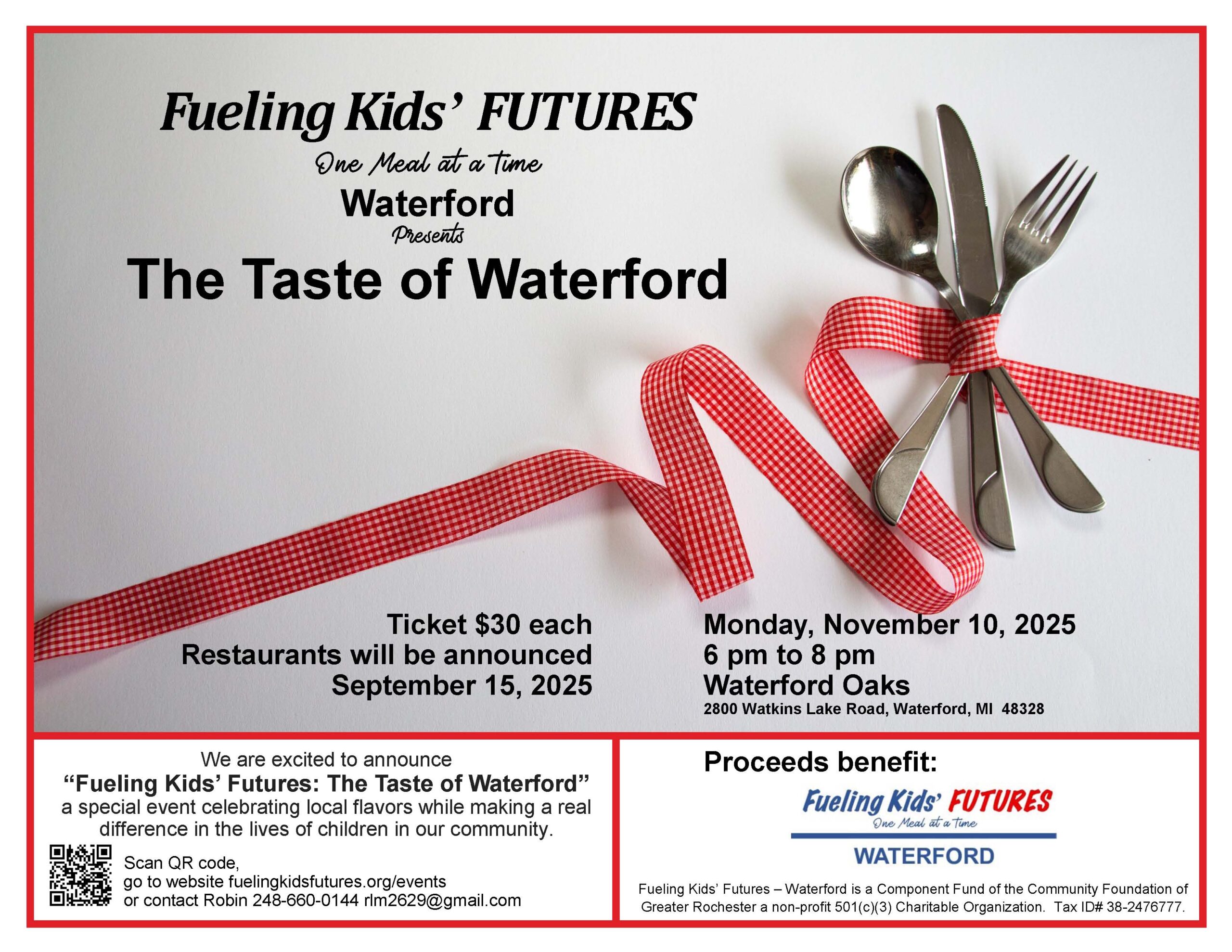 We are excited to announce “Fueling Kids’ Futures: The Taste of Waterford” a special event celebrating local flavors while making a real difference in the lives of children in our community.